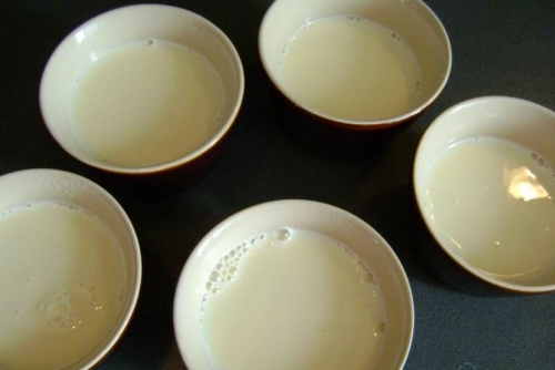 Заливаємо приготовані формочки рідиною. Формочок беріть стільки, на скільки Ви розраховуєте людина. Для того ,щоб не утворилася суха плівка, загортаємо все фольгою. Потім ставимо на ніч у холодильник, тільки спочатку остудіть суміш.