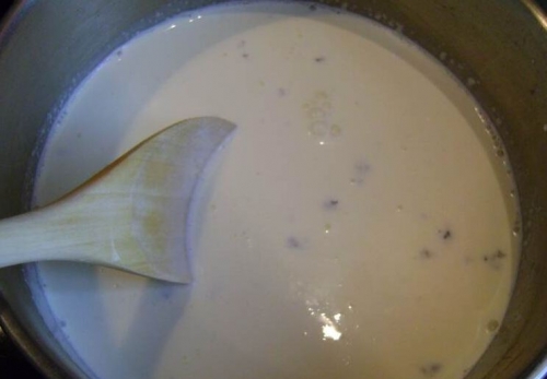 Для початку нам потрібно в 2 ст.ложках холодної води замочити желатин в течії 10 хвилин. У сотейнику ми повинні змішати вершки,молоко, цукор і ваніль. Потім все ретельно змішуємо і ставимо на плиту,щоб трохи розігріти. Як тільки ми знімаємо з плити теплу суміш ,відразу ж закидаємо в неї желатин. І все ретельно перемішуємо.