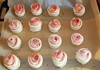 – Для таких трояндочок підійде не тільки ковбаска,можна використовувати ще яблучко. І вийдуть нас солодкі трояндочки.