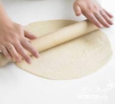 Готове тісто припорошим невеликою кількістю борошна, розкотимо з допомогою качалки в тонкий лист (близько 3-5 мм). Якщо Ви багато працювали з тестом, то зможете обійтися і без качалки. Надаємо основі піци форму кола – оптимальніше всього (Ви можете надати будь-яку іншу) і переносимо на злегка присипану борошном деко.