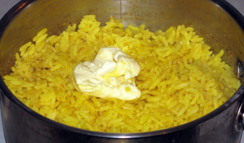 У вже готовий рис додаємо вершкове масло і знову накриваємо кришкою. Залишаємо настоятися до потреби, а тобто до запитання.