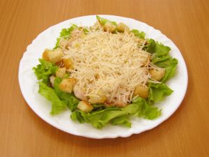 Салат "Цезар" – смачний і простий у приготуванні, він був названий на честь кухаря, який його винайшов. Цікаво, що в класичному вигляді його рідко вживають, господині люблять експериментувати з цим салатів, додаючи туди різні продукти на кшталт: курки, шинки, бекону, грибів, огірки, помідори, креветки і т.д.