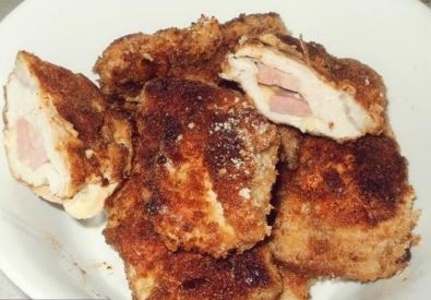 "Кордон блю" з свинини готовий. Можна додати до нього сметани і викласти на салат.